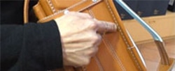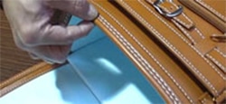 トヤマのランドセルのカブセは【ヘリ返し】というつくりをしています。強くて美しいので高級なカバンはヘリ返しが多いのですが、カドの部分のシワの処理で高い技術が要求されますので、手間がかかります。